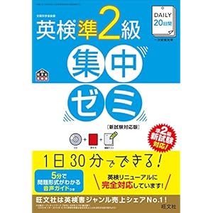 英検準2級 集中ゼミ DAILY20日間<新試験対応版> CD付 ~ 英検準2級 集中ゼミ DAILY20日間<新試験対応版> CD付 編者: 旺文社 登録すると、関連商品の予約開始や発売の情報をお届け 書籍 出版社:旺文社 発売日: 2017年8月