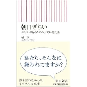 朝日ぎらい よりよい世界のためのリベラル進化論の通販橘玲 ~ 朝日ぎらい よりよい世界のためのリベラル進化論 (朝日新書)橘玲(新書・選書・ブックレット:朝日新書) 朝日新聞に代表される戦後民主主義は、なぜ嫌われるのか。世界基準のリベラリズムから脱落しつつある日本の