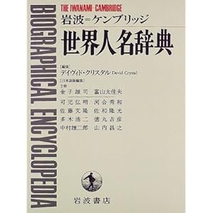 岩波=ケンブリッジ世界人名辞典 クリスタル,デイヴィド ~ 約15000人の伝記の集大成「ケンブリッジ版世界人名辞典」の日本語版。排列は人名片仮名読みの五十音順。巻末にアルファベット順の索引がある。各国元首・政治指導者、宗教指導者、ノーベル賞受賞者の一覧付き。