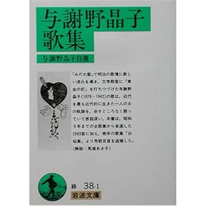 与謝野晶子歌集 その他文学 アトリエ通信 Yahooブログ ~ 「与謝野晶子歌集」岩波文庫) 「センシュアルな晶子か、それからの晶子か」 大嶽 洋子( 素人社) 与謝野晶子といえば 老舗和菓子屋のお嬢様で、歌人というイメージしかなかったが、 改めて歌集を読んでみると 彼女の辿った道を