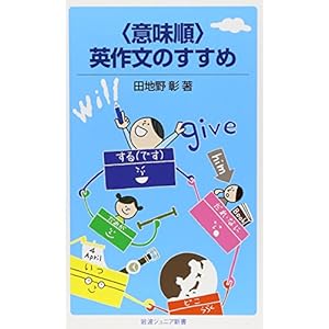 〈意味順〉英作文のすすめ 岩波ジュニア新書 田地野 彰 ~ 〈意味順〉英作文のすすめ 岩波ジュニア新書 著者:田地野 彰 販売元:岩波書店 20110319 販売元: クチコミを見る 中高生用の,英作文の本です。 が,この本は大人にも,そして英語を総復習したい人全て