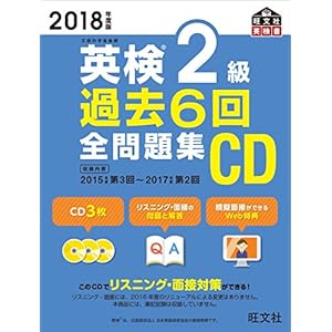 2018年度版 英検2級 過去6回全問題集CD 旺文社英検書 ~ Amazonで旺文社の2018年度版 英検2級 過去6回全問題集CD 旺文社英検書。アマゾンならポイント還元本が多数。旺文社作品ほか、お急ぎ便対象商品は当日お届けも可能。また2018年度版 英検2級 過去6回全問題集CD 旺文社英検