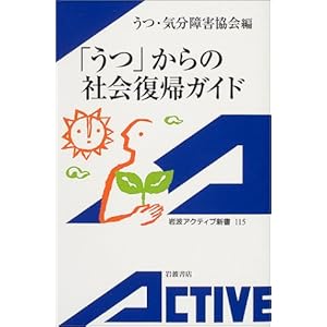 新書マップ 本 「うつ」からの社会復帰ガイド ~ うつ・気分障害協会編 岩波書店 2004 xii 151 22p 岩波アクティブ新書 115 ISBN 新 旧 サラリーマンが「うつ病」で会社を休むことになった。治療の中心は服薬と十分な休養。症状を自己管理