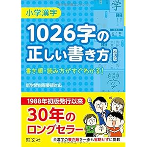小学漢字1026字の正しい書き方 四訂版 旺文社 ~ 「2020年度からの新学習指導要領対応版」 小学校で学習するすべての漢字の正しい書き方を、一画ずつ示しました。誌面は見やすく分かりやすい4色刷り。小学校で習う音読み・訓読みはもちろん、中学校以上