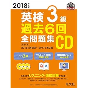 楽天ブックス 2018年度版 英検3級 過去6回全問題集CD ~ 2018年度版 英検3級 過去6回全問題集CD 旺文社 本の購入は楽天ブックスで。全品送料無料!購入毎に「楽天スーパーポイント」が貯まってお得!みんなのレビュー・感想も満載。