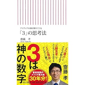 「3」の思考法 アイディアの神が降りてくる (朝日新書) ~ 紙の本 「3」の思考法 アイディアの神が降りてくる (朝日新書) 著者 斎藤 孝 (著) 神の数字「3」を使って、思考の型と技を身につけよう! 「3つ選ぶ」とアタマが動き出す、「三脚思考」でコンセプトを立てる、「3つの理由」で